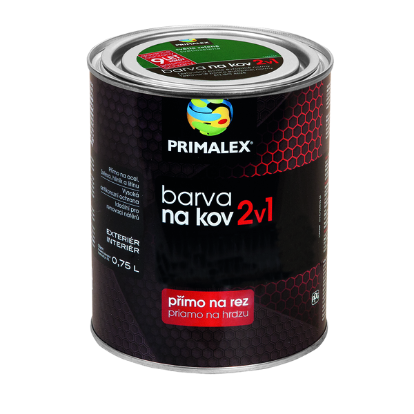 Nátěr na kovové povrchy ve venkovním i vnitřním prostředí bez nutnosti použití základní barvy. Nenašli jste odstín, který hledáte? Podívejte se také na novinku Primalex barva na kov 2v1 s až 15letou ochranou proti rzi.