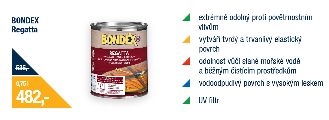 Vysoce odolný lak na dřevo, které má blízko k vodě – to je Bondex Regatta. Spojení hloubkové ochrany a povrchového štítu, které odolá i náročným podmínkám.