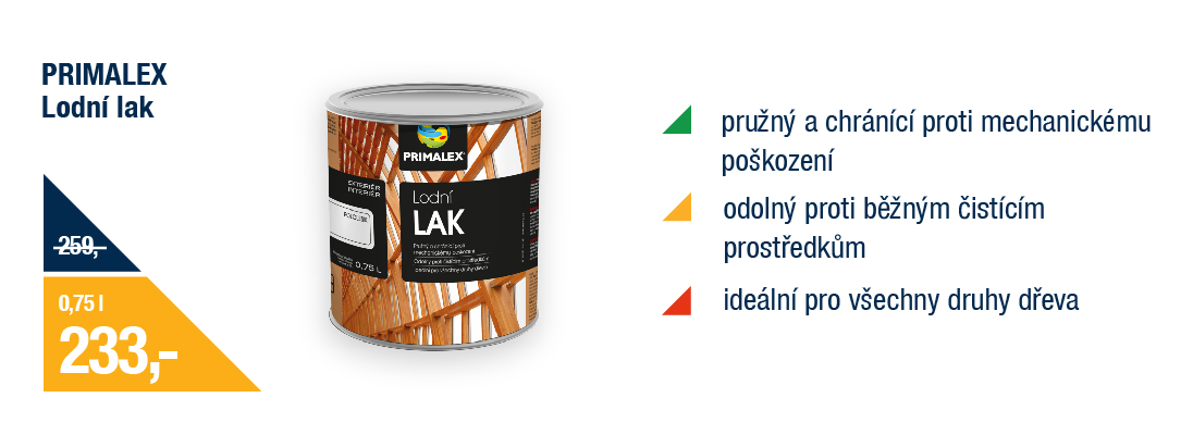 Primalex Lodní lak – když chcete od laku víc – ať už jde o okenní rámy nebo zahradní lavičku. Pevný, pružný a krásně lesklý.