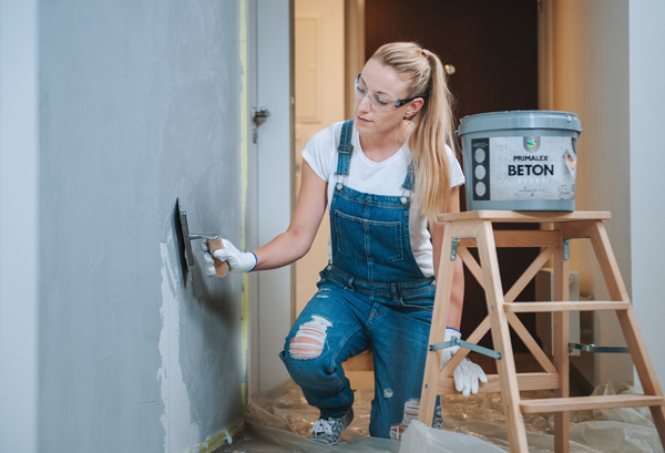 Na e-shopu Dům barev nabízíme stěrku Primalex Beton efekt. Tato matná interiérová stěrka je vysoce paropropustná, odolná a vytváří krásný efekt pohledového litého betonu. Aplikace produktu Primalex Beton efekt je snadná a zvládne ji každý bez zbytečně vysokých nákladů. Stěrku stačí po zakoupení pouze řádně promíchat. Navíc je tónovatelná do různých odstínů, takže se nemusíte bát, že byste museli zůstat pouze u jednoho odstínu šedi.