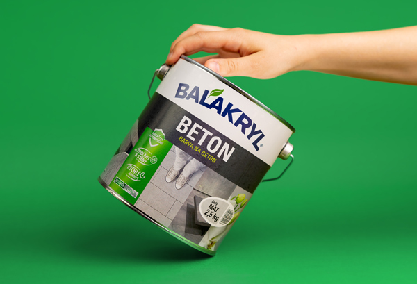 NOVINKOU na trhu je rychleschnoucí vodou ředitelná barva na beton Balakryl Beton.