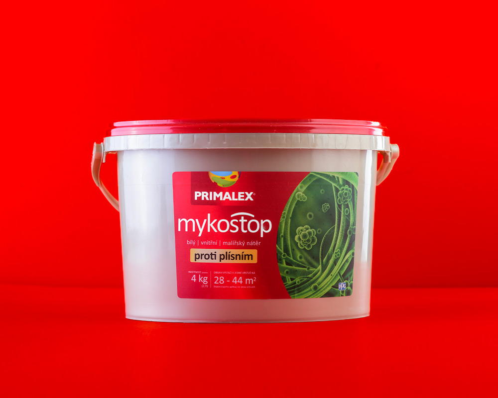 - Stěny natřete malířskou barvou Primalex Mykostop, která ochrání zeď před tvorbou nových plísní nebo použijte Primalex Mykostop prevence v kombinaci s Vámi vybraným interiérovým nátěrem Primalex nebo jakoukoli interiérovou nátěrovou hmotou Primalex obohacenou o přípravek Primalex Mykostop prevence.