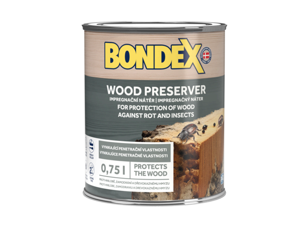 Bondex Wood Preserver je určen k napouštění dřeva pod vodou ředitelné i syntetické laky, lazury a krycí barvy: dlouhodobě chrání proti dřevokaznému hmyzu a hnilobě, zachovává kresbu dřeva, proniká hluboko do jeho struktury a odpuzuje vodu.