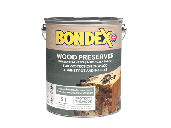 Bondex Wood Preserver je určen k napouštění dřeva pod vodou ředitelné i syntetické laky, lazury a krycí barvy: dlouhodobě chrání proti dřevokaznému hmyzu a hnilobě, zachovává kresbu dřeva, proniká hluboko do jeho struktury a odpuzuje vodu.