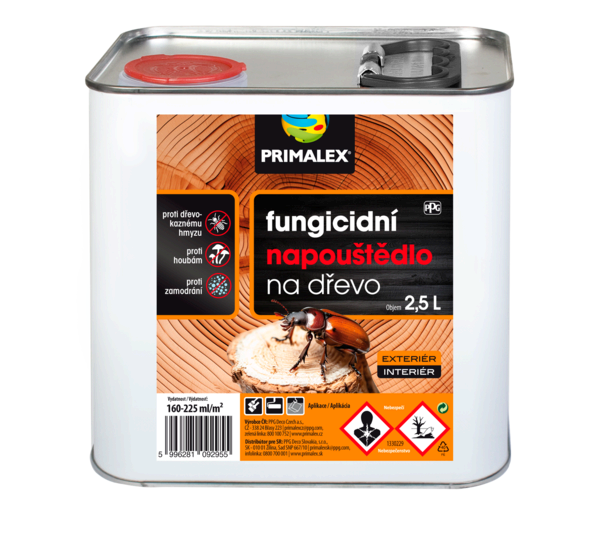Primalex fungicidní napouštědlo na dřevo je účinný impregnační nátěr pod syntetické laky, lazury a krycí barvy, který poskytuje úplnou fungicidní ochranu a zároveň má preventivní charakter.
