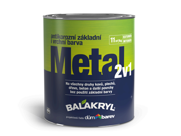 METAL 2v1 je jednosložková antikorozní akrylátová matná vodou ředitelná nátěrová hmota pro venkovní i vnitřní použití s vynikající přilnavostí na různé typy povrchů.