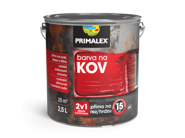 Primalex Barva na kov 2v1 je určena k přímým ochranným nátěrům kovů v interiéru i exteriéru bez nutnosti použití základní barvy.