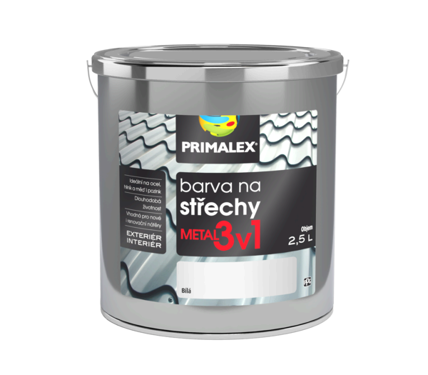 PRIMALEX METAL 3v1 barva na střechy spojuje vlastnosti základního antikorozního nátěru a vrchní barvy.