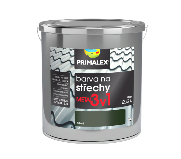 PRIMALEX METAL 3v1 barva na střechy spojuje vlastnosti základního antikorozního nátěru a vrchní barvy.