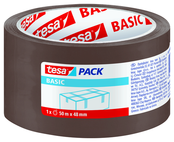 tesapack® Basic, balící páska na lepení krabic, na lehké zásilky a balíky.