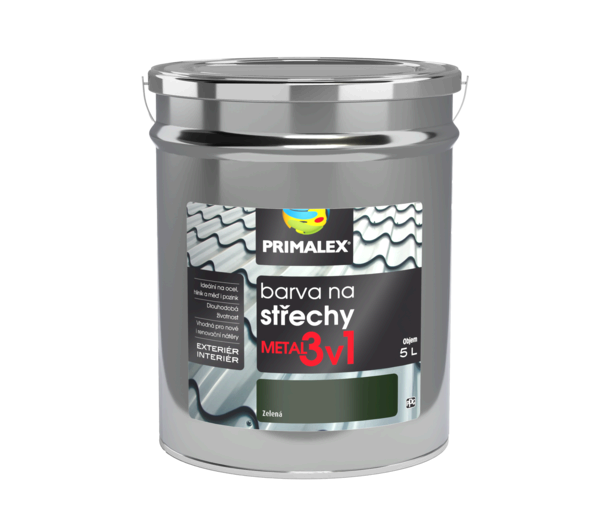 PRIMALEX METAL 3v1 barva na střechy spojuje vlastnosti základního antikorozního nátěru a vrchní barvy.