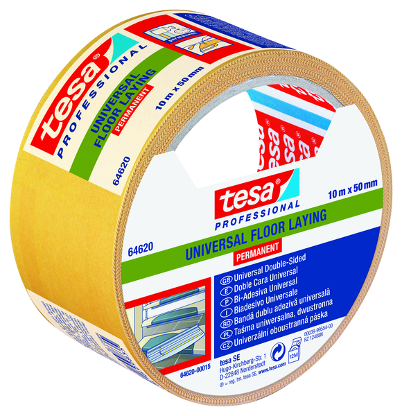 tesa® Univerzální oboustranná páska na kladení podlahových krytin, permanentní se střední zátěží.