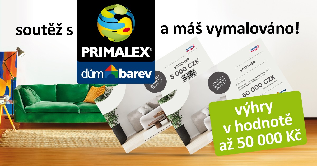 Každý den od 17. do 23. dubna můžeš získat voucher v hodnotě 5 000 Kč na nákup barev Primalex v prodejnách Dům barev.